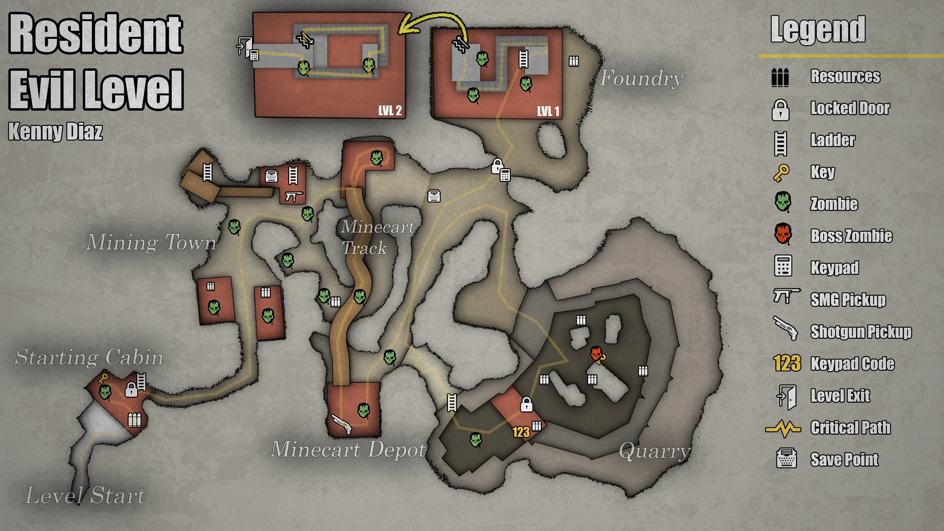First open area, optional building on the left with extra ammunition and an SMG pickup.